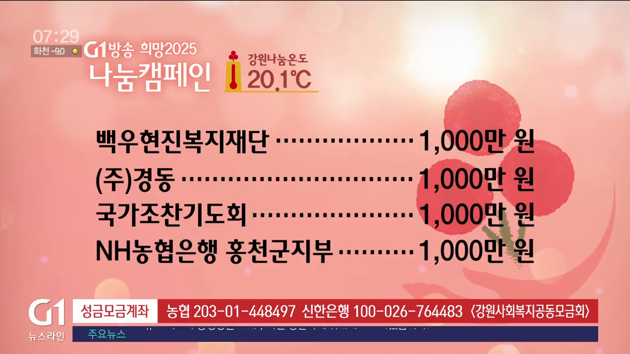 NH농협은행 홍천군지부 1,000만 원