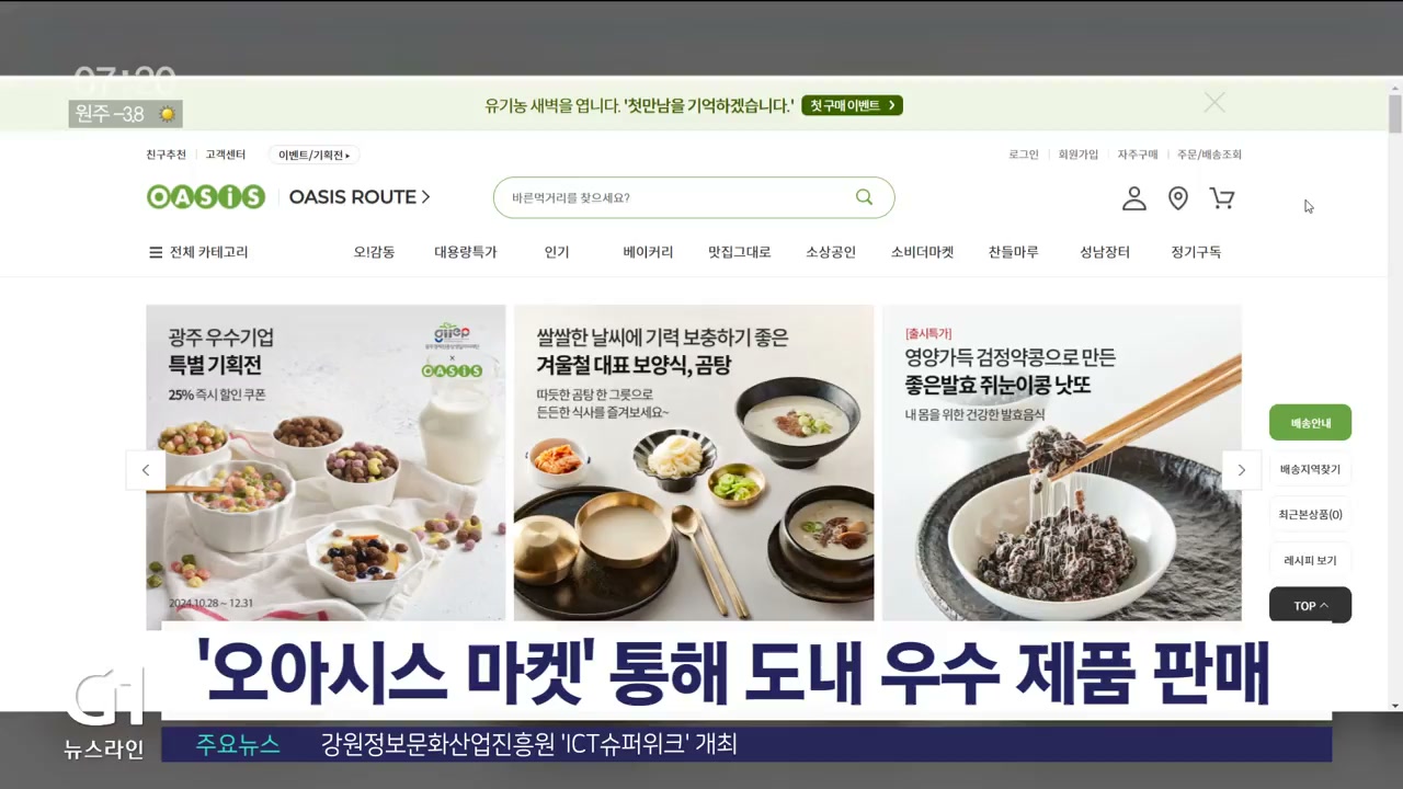 도는 오는 22일까지 대형 유통플랫폼인 오아시스 마켓과 온라인 강원 기획전을 개최한다고 밝혔습니다.