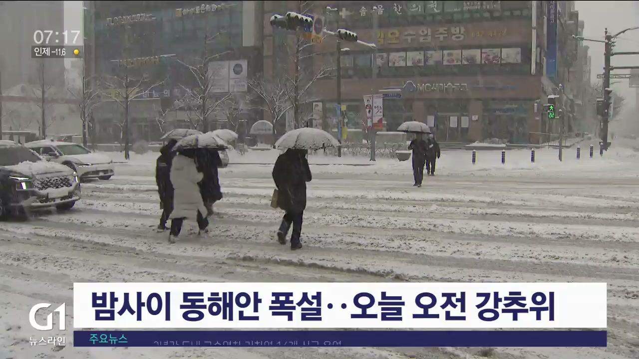밤사이 동해안 폭설..오늘 오전 강추위