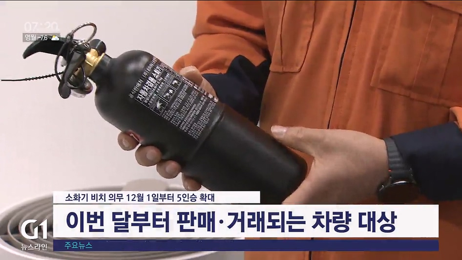 이번 달부터 차량용 소화기 의무 비치 대상 차량이 기존 7인승에서 5인승으로 확대됐습니다.