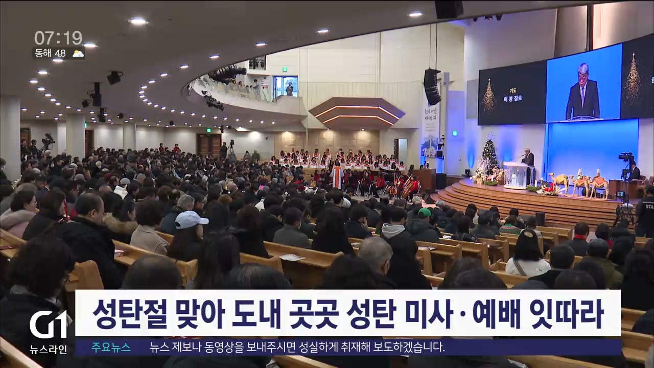 춘천과 강릉, 원주 등 도내 교회마다 성탄절 기념 예배를 하며, 예수 그리스도의 탄생을 축하하고 복음의 은총과 성탄의 의미가 세상 온 누리에 퍼지기를 기도했습니다.