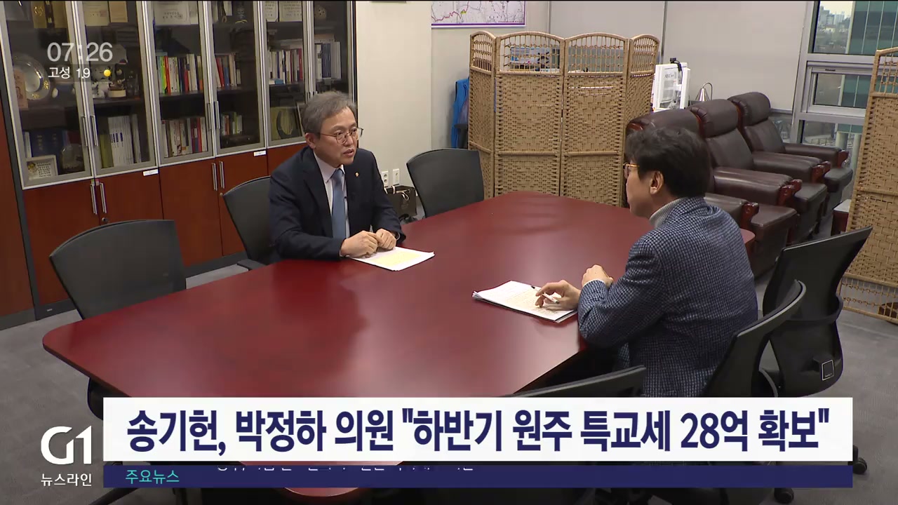 송기헌, 박정하 두 원주 지역구 국회의원은 공동 보도자료를 통해 하반기 행정안전부의 특별교부세 28억 원을 확보했다고 밝혔습니다.