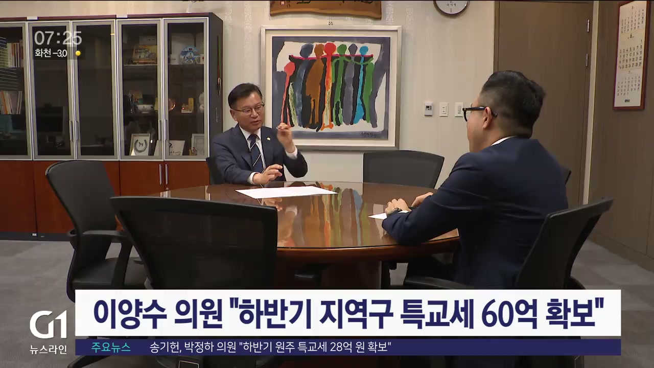 속초-인제-고성-양양 지역구 국민의힘 이양수 의원은 하반기 지역구 특별교부세를 60억 원 확보했다고 밝혔습니다.