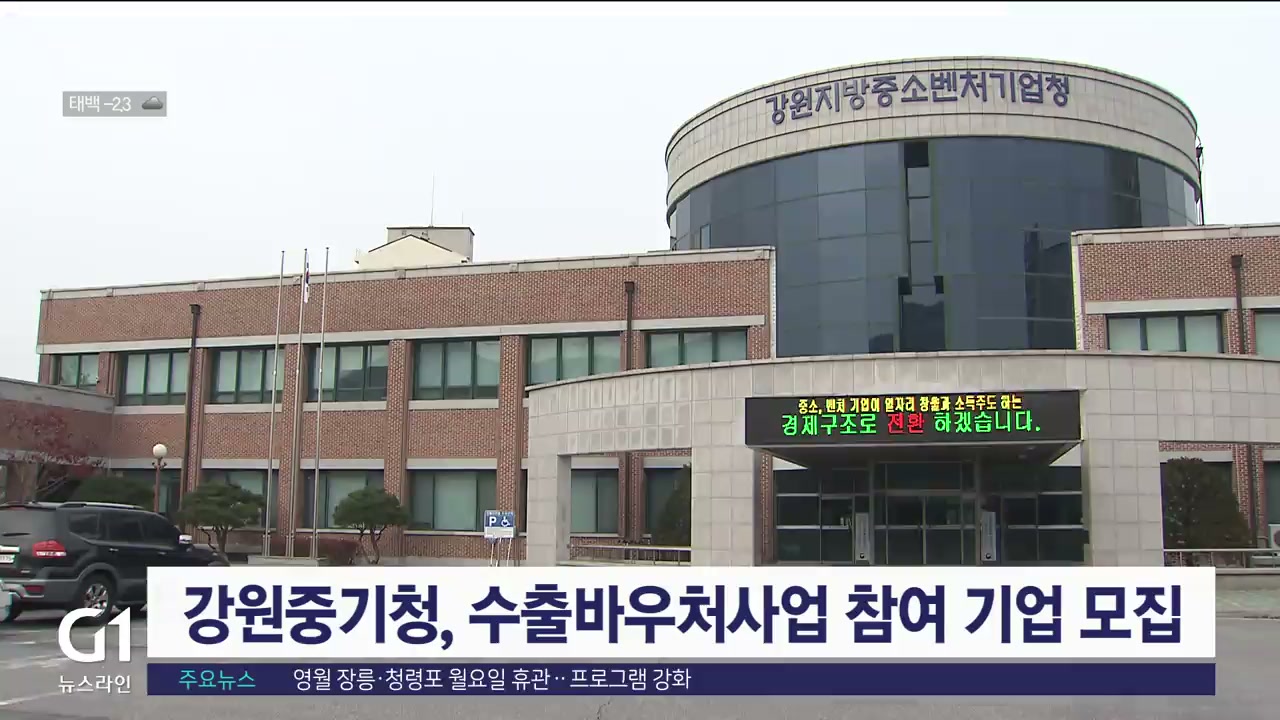 강원지방중소벤처기업청이 내일(7일)부터 오는 23일까지 수출바우처사업과 글로벌 강소기업 1,000+ 프로젝트 참여 기업을 모집합니다.