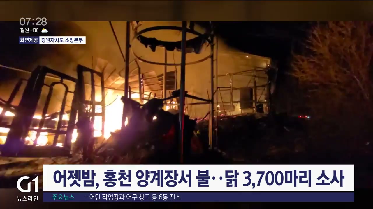 어젯밤, 홍천 양계장서 불..닭 3,700마리 소사