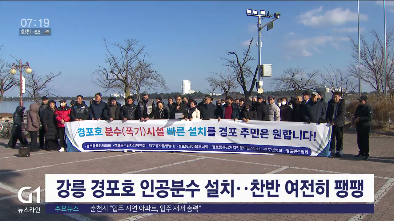 강릉 경포호 인공분수 설치를 둘러싼 찬반 논쟁이 여전히 이어지고 있습니다.