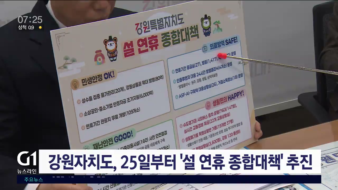 강원자치도가 설 연휴를 맞아 오는 25일부터 30일까지 엿새간 '설 연휴 종합대책'을 추진합니다.