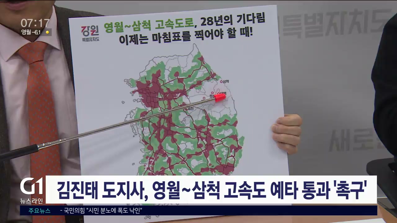 김진태 도지사는 어제(20일) 도청에서 기자간담회를 갖고 "강원 남부권은 전국에서 유일하게 고속도로 30분 내 진입이 불가능한 곳"이라며,
