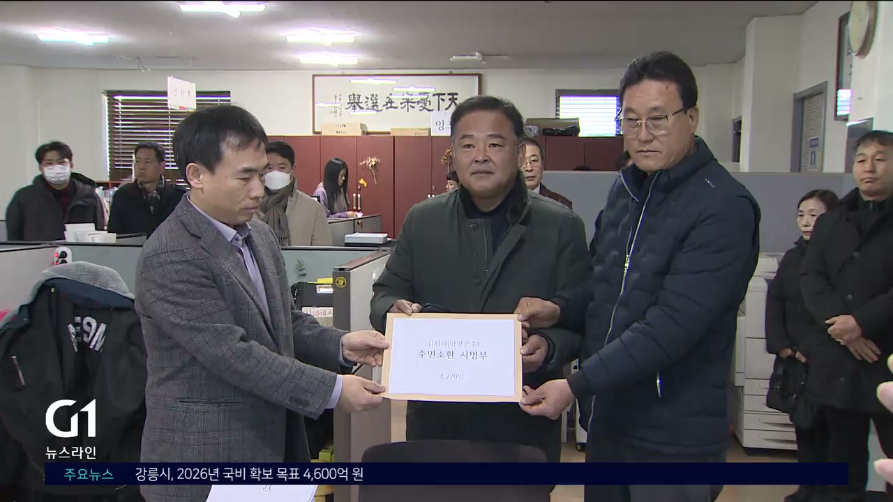 김진하 양양군수에 대한 시민단체의 주민소환투표가 공식 발의됐습니다.