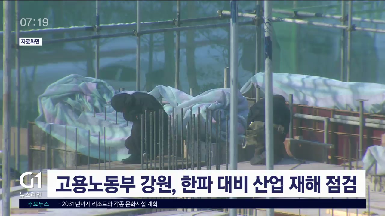 고용노동부 강원지청이 오늘(5일)부터 오는 7일까지 겨울철 한파로 인해 발생할 수 있는 산업 재해를 예방하기 위해 특별 점검에 나섭니다.