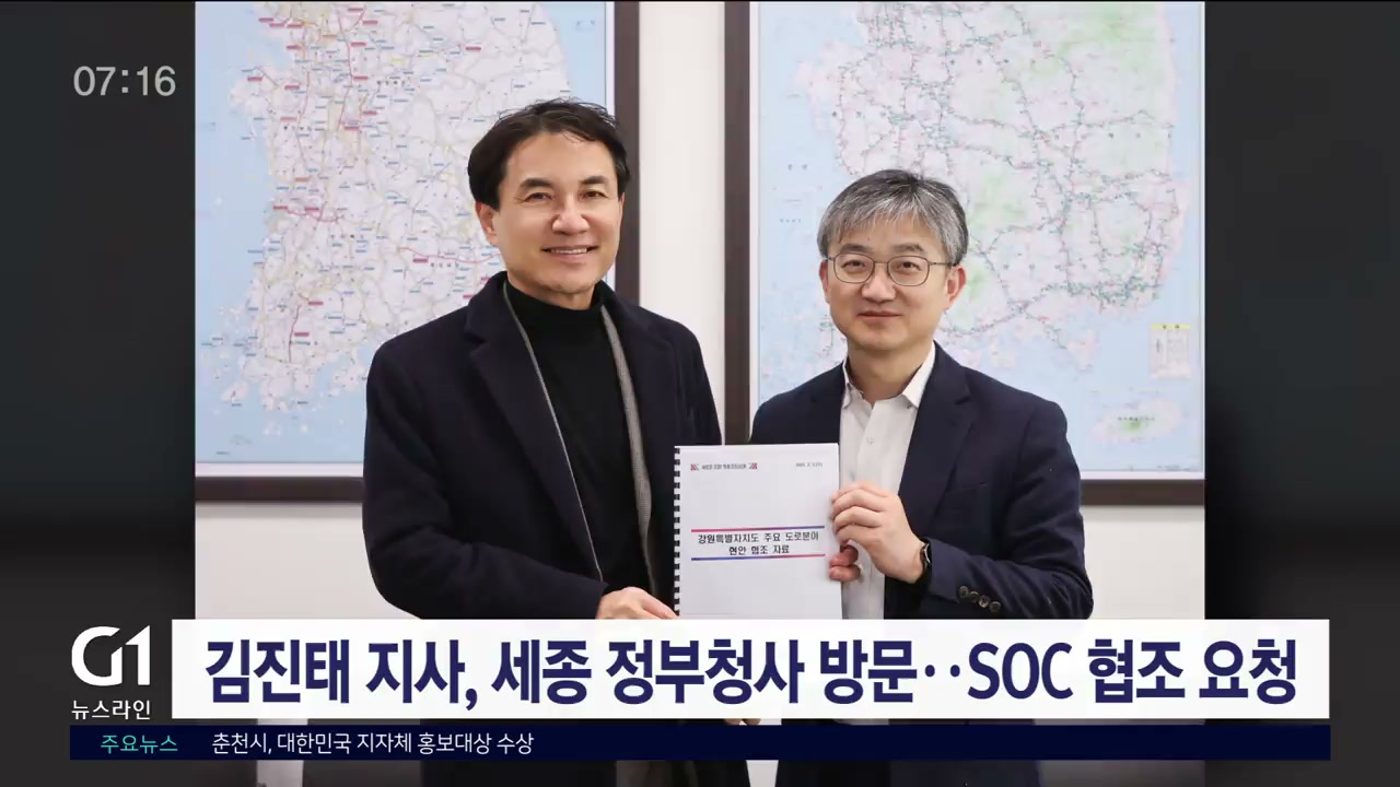 강원자치도가 2025년 도로 사업 주요 추진계획을 발표한 가운데, 김진태 지사가 어제(5일) 세종 정부청사를 방문해 적극적인 관심을 부탁했습니다.