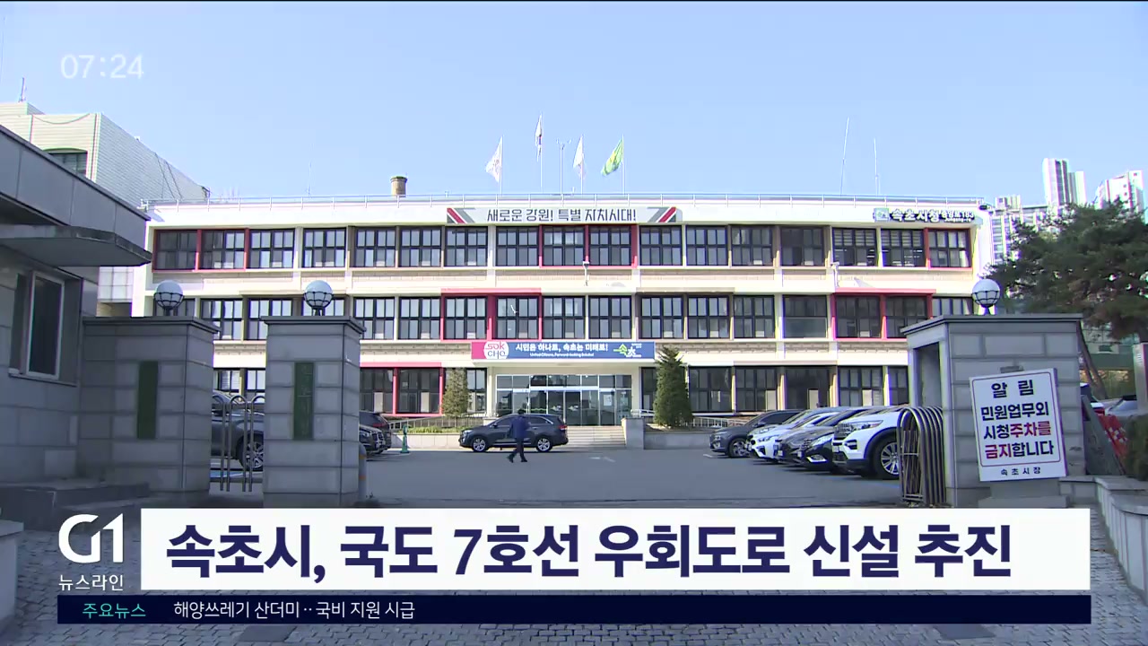 속초시는 대포동과 장사동을 잇는 7.5km 구간에 2천억 원을 들여 4차로를 신설하는 '국도 7호선 대체 우회도로 개설 사업'을 추진한다고 밝혔습니다.