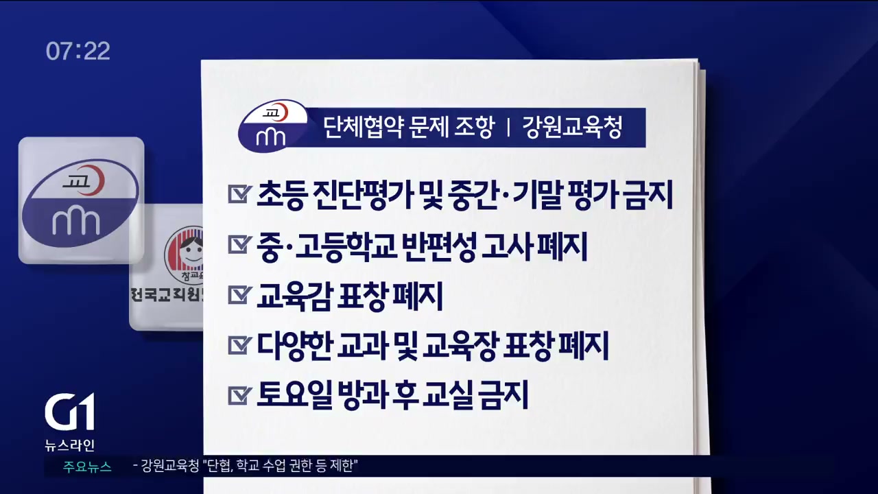 /기존 단체협약에 담긴 초등 진단평가 및 중간·기말 평가 금지 조항과 중·고등학교 반편성 고사 폐지, 교육감 표창 폐지, 토요일 방과 후 교실 금지 등의 조항이