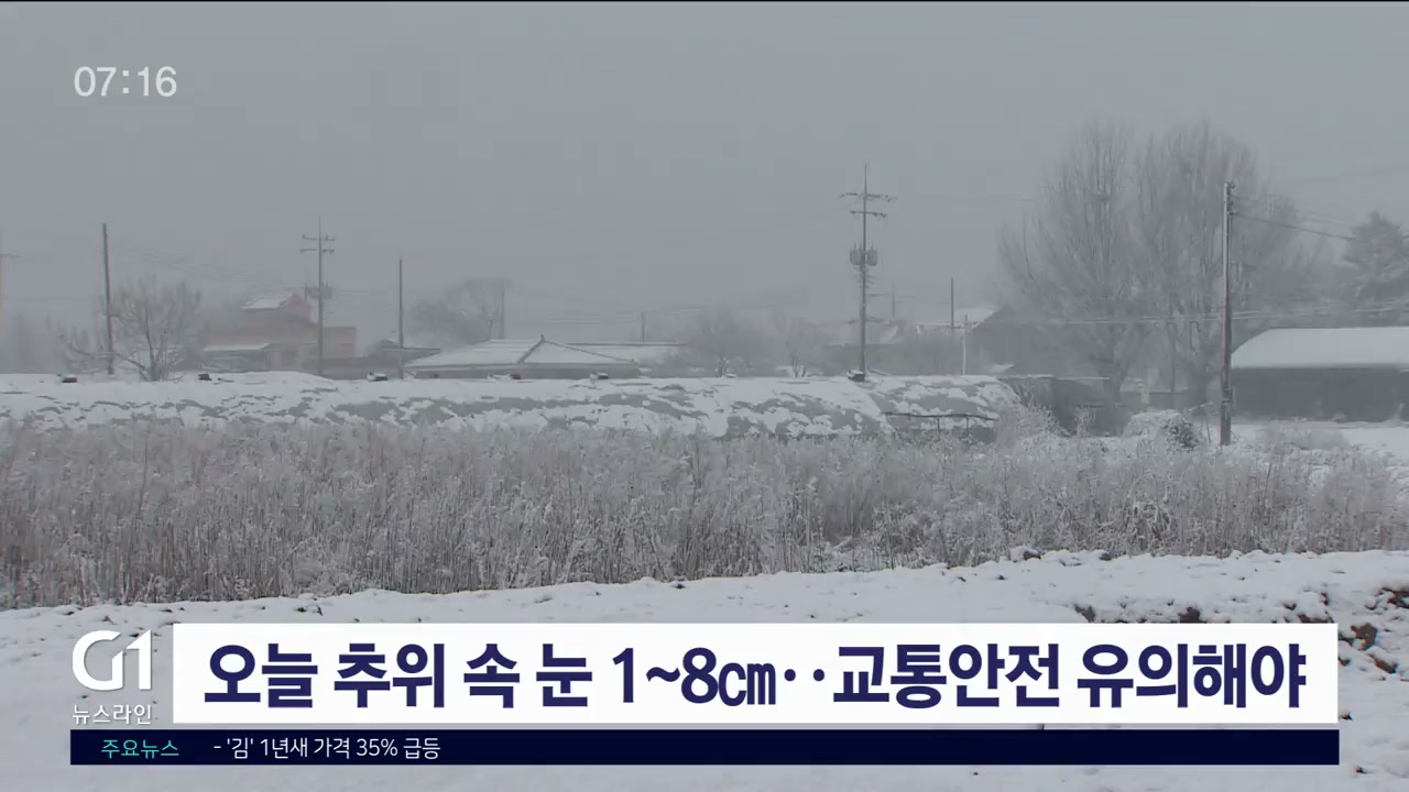 오늘 추위 속 눈 1~8cm..교통안전 유의해야
