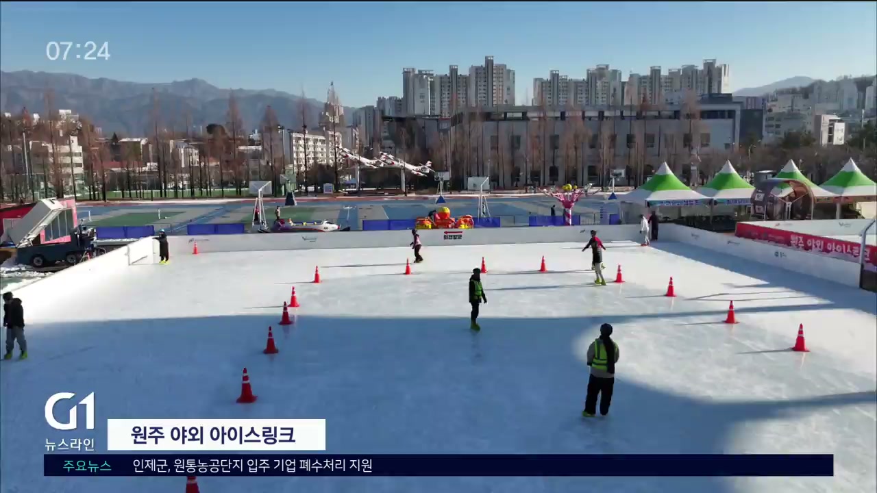 원주 판대 아이스파크는 국내 최대 규모의 인공 빙벽장으로,