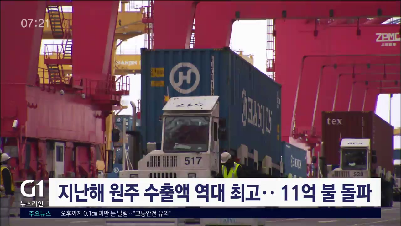 지난해 원주 지역 수출액이 사상 처음으로 11억 달러를 돌파한 것으로 나타났습니다.