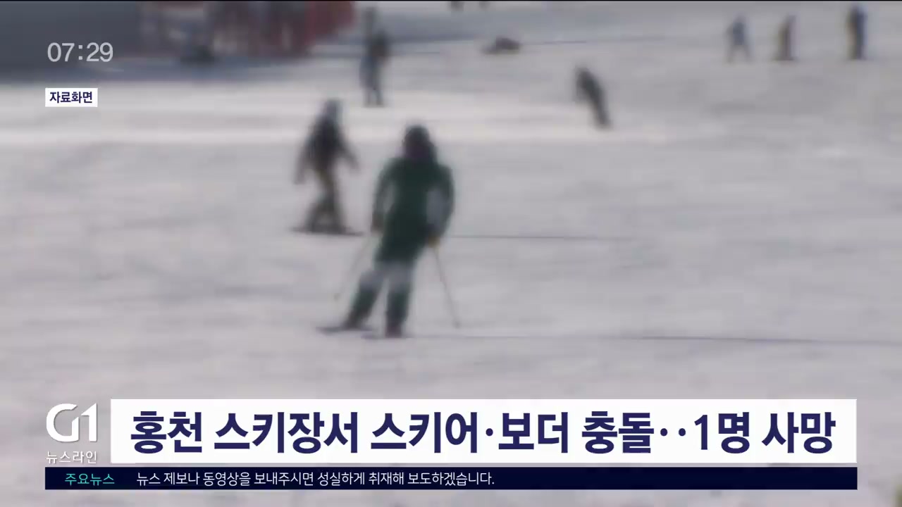 어제 저녁 7시 30분쯤 홍천군 서면 한 스키장 슬로프에서 스키를 타던 37살 A씨가 스노보드를 타던 20대 B씨와 충돌하는 사고가 발생했습니다.