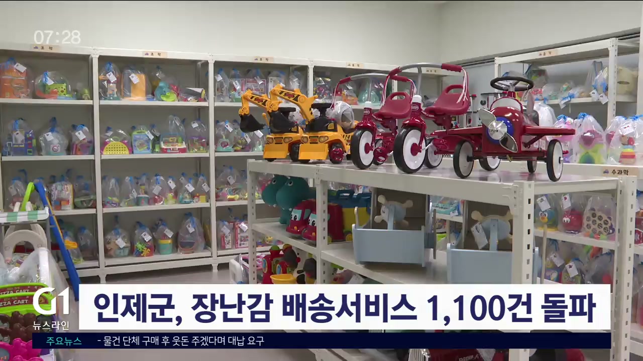 인제군은 지난해 장난감 무상 배송과 수거 서비스 이용이 1,168건으로 집계됐다고 밝혔습니다.