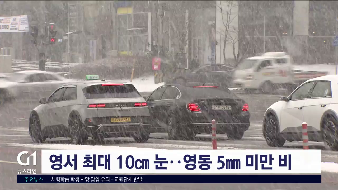 영서 최대 10㎝ 눈..영동 5㎜ 미만 비
