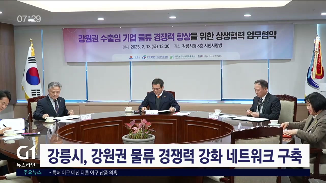 강릉시가 '강원권 수출입 기업 물류 경쟁력 향상을 위한 업무 협약'을 체결하고 지역 물류 경쟁력 강화에 나섰습니다.