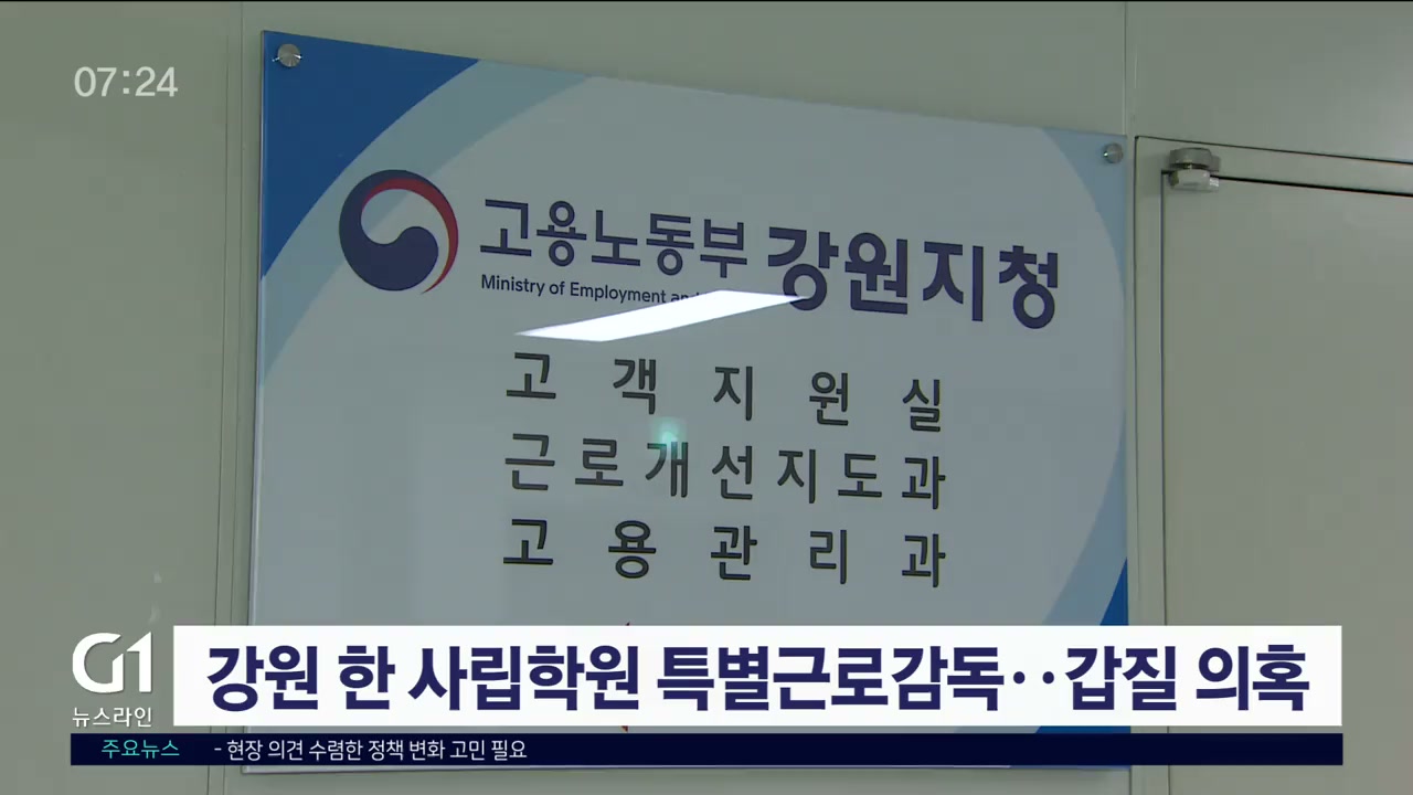 강원지방고용노동지청은 12명으로 구성된 특별근로감독팀을 구성하고, 문제의 사립학원에 대한 사업장 현장감독에 착수했습니다.