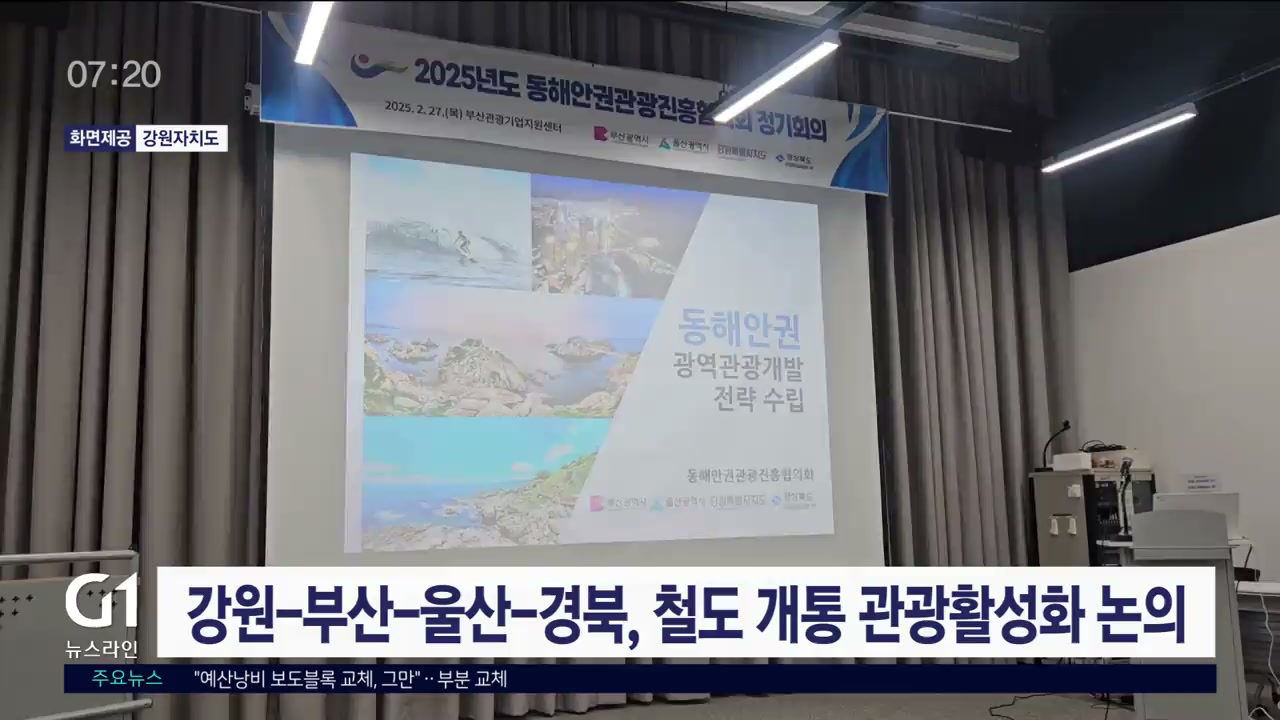 강원자치도와 부산, 울산, 경북 등 4개 시도 관계자들이 어제(27일) 부산 관광기업지원센터에서 동해선 철도 개통에 따른 관광 활성화 방안을 논의했습니다.