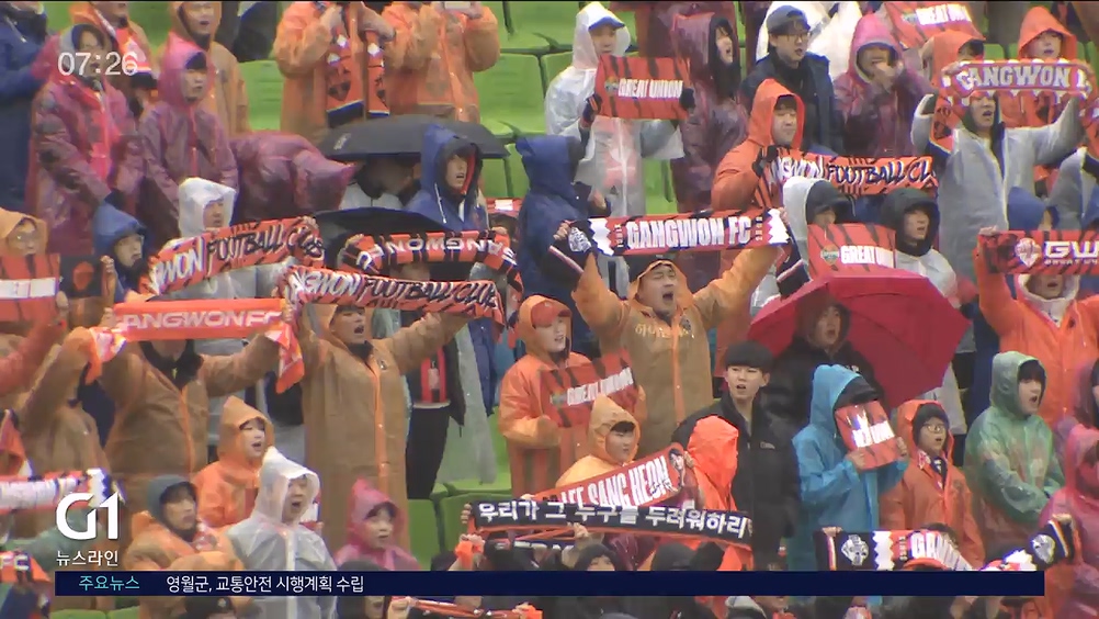 강원은 다음 경기 승리를 기약해야 했지만 궂은 날씨에 경기장을 찾은 팬들의 응원은 뜨거웠습니다.