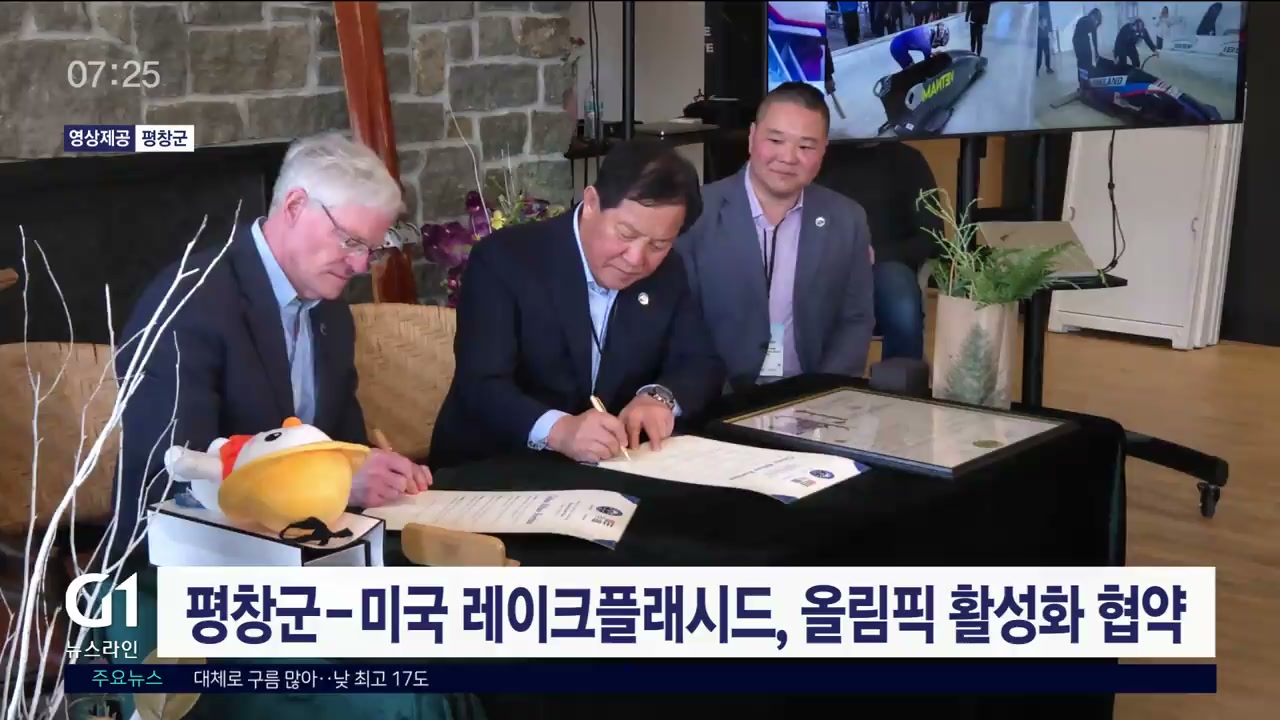 평창군은 지난 7일 미국 뉴욕주의 레이크플래시드 시의 공식 초청을 받아 올림픽 유산 활성화와 교류를 위해 업무협약을 체결했습니다.