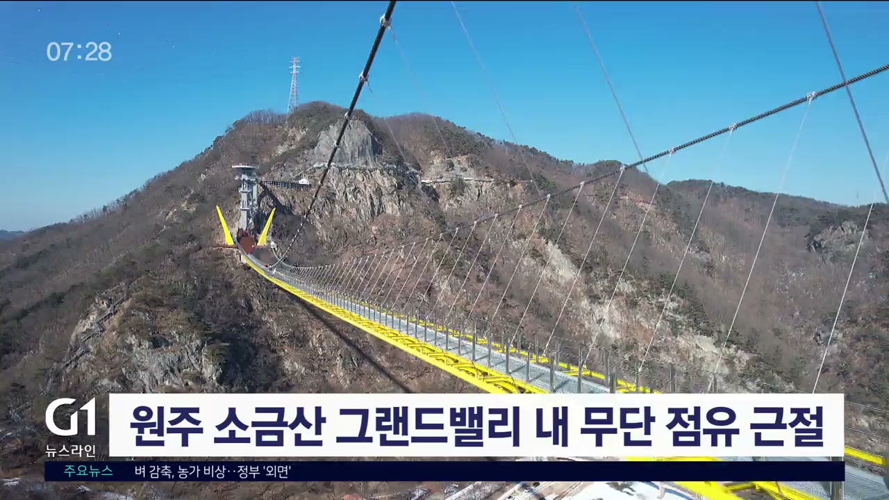 소금산 그랜드밸리는 원주의 대표 관광지로 많은 관광객이 찾고 있지만, 현재 무단 점유로 인한 불법 상행위로 통행 불편이 지속되고 있습니다.