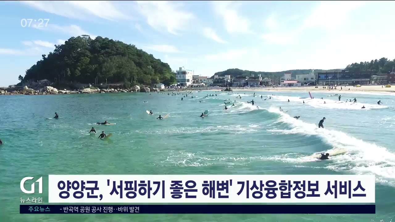 국내 서핑 성지로 자리매김한 양양군이 기상융합정보 서비스 제공을 통한 관광객 유입에 나섰습니다.