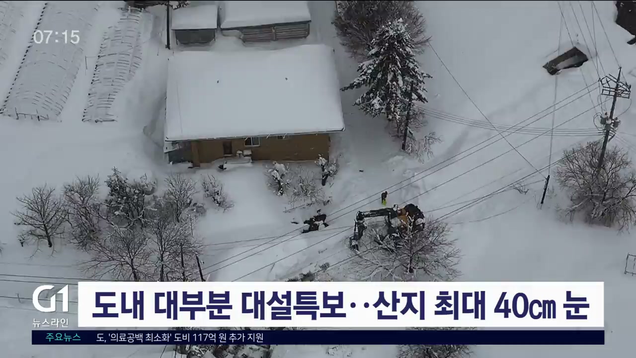 도내 대부분 대설특보..산지 최대 40cm 눈