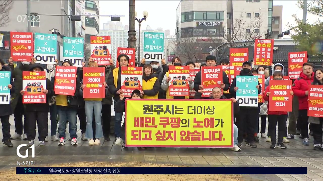 원주 배달업 소상공인들이 거리로 뛰쳐 나왔습니다.