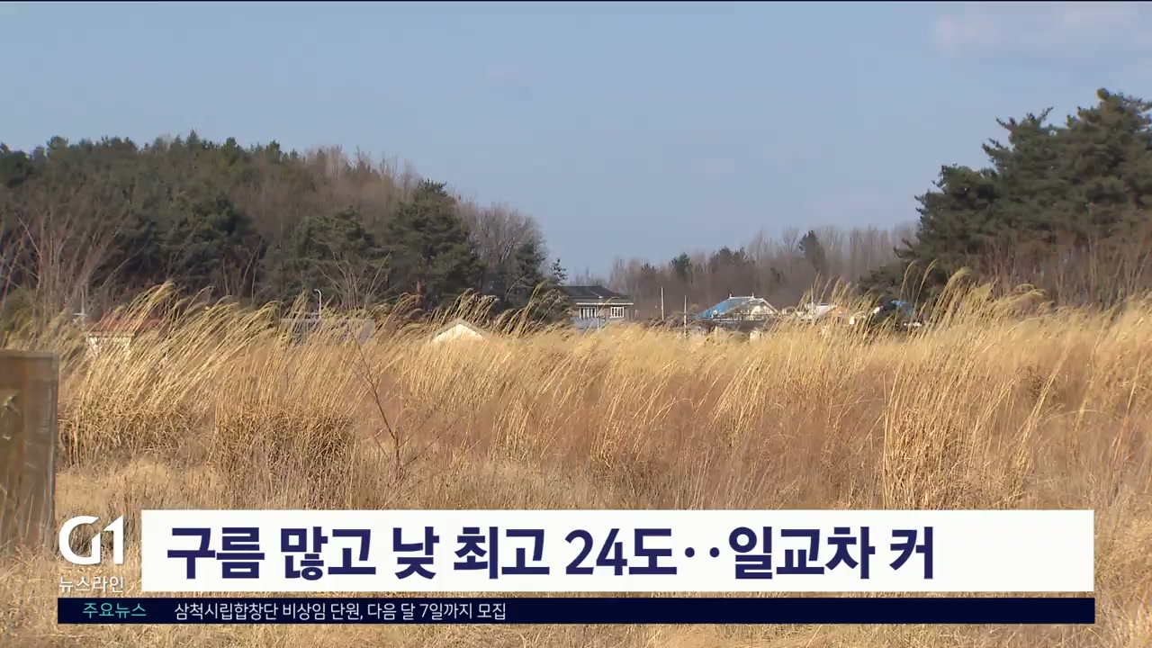 오늘 강원자치도는 구름이 많고, 낮 기온이 24도까지 오르는 등 일교차가 크겠습니다.