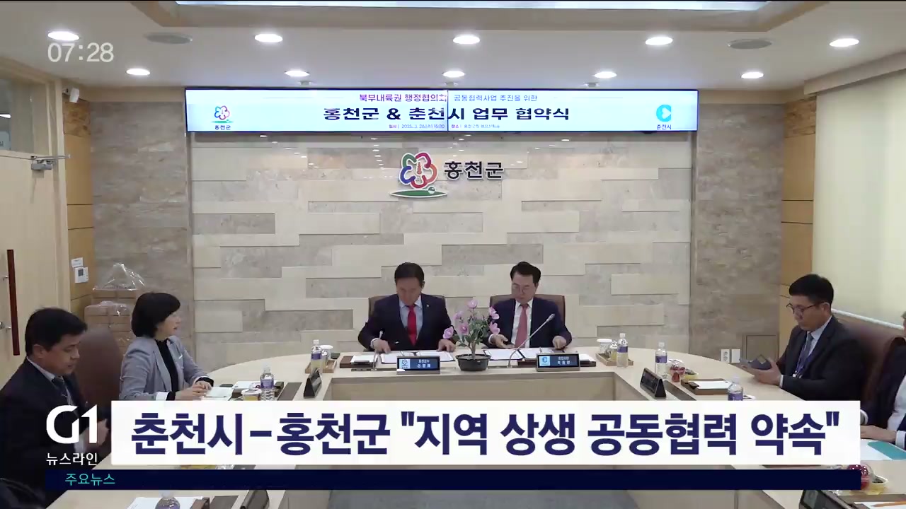 신영재 홍천군수와 육동한 춘천시장은 어제(26일) 홍천군청에서 '공동 협력 사업 업무협약식'을 개최했습니다.