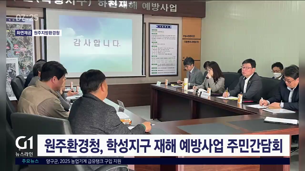원주지방환경청은 어제(10일) 국가하천인 원주천 '학성지구 하천재해 예방사업' 보상 관련 주민간담회를 가졌습니다.