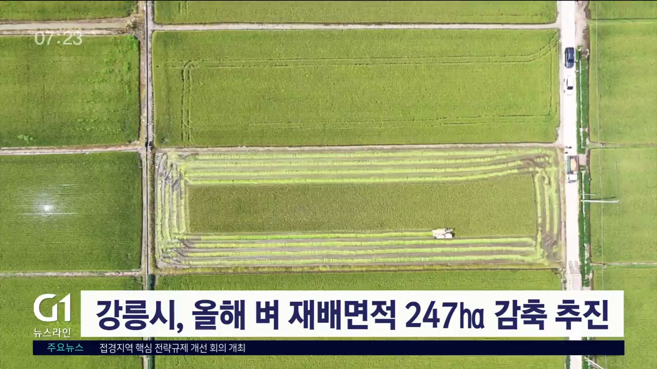 강릉시의 벼 재배면적 감축 목표는 지난해 재배면적의 10.9%인 247ha로, 자율감축과 전략작물, 농지전용 등 5가지 방안으로 추진됩니다.