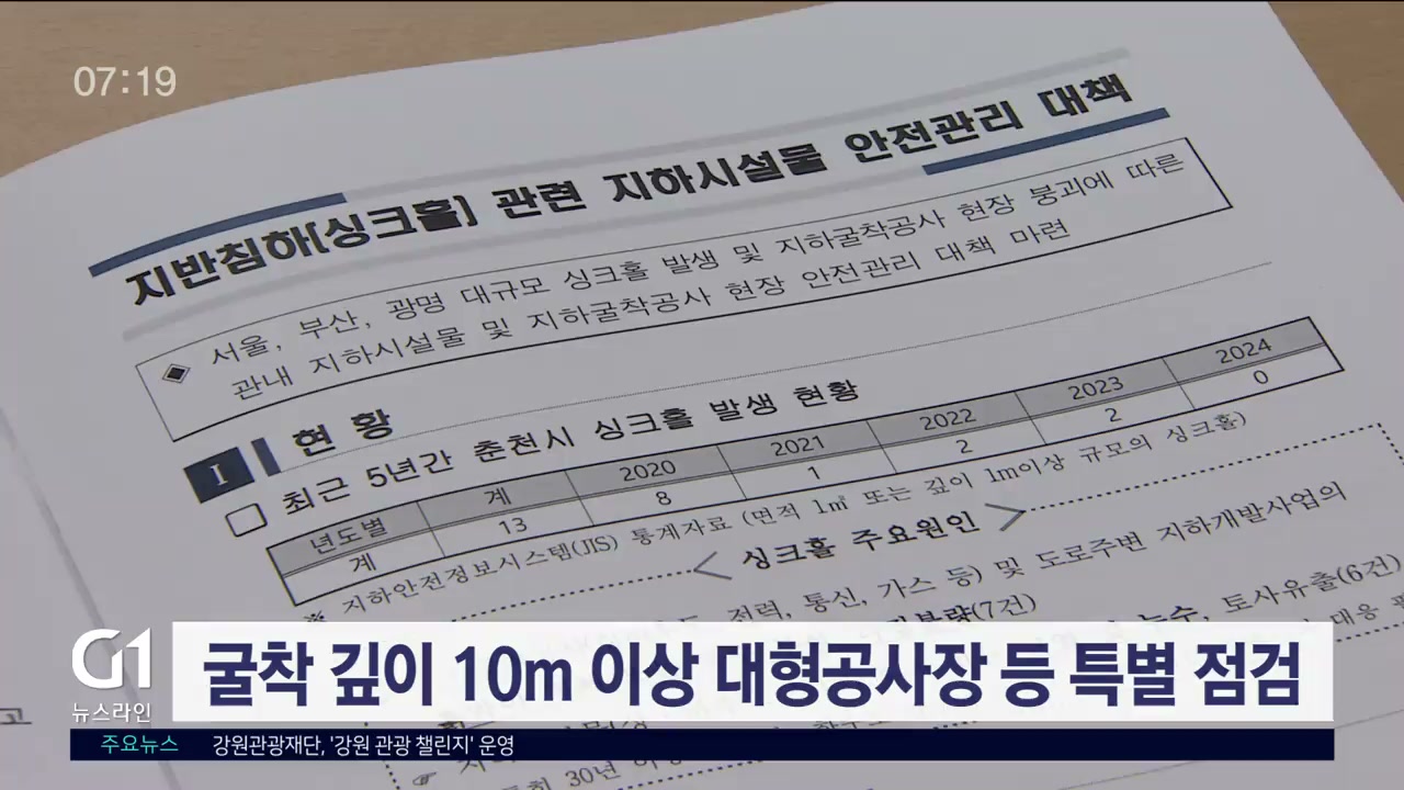 이에 따라 다음달부터 굴착 깊이 10m 이상 대형공사장 12곳과 도심 상수도 11개 구간 등에 대한 특별 점검을 실시합니다.