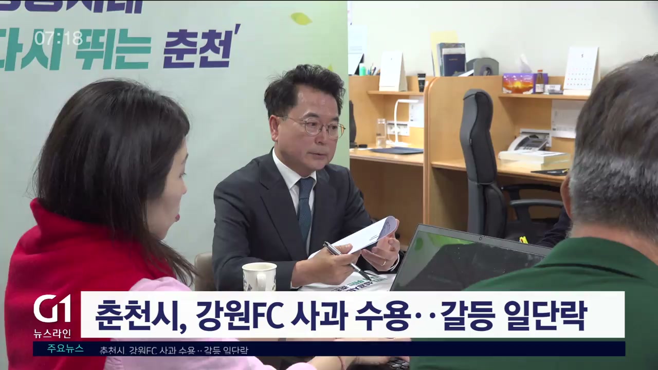 육동한 춘천시장은 어제(13일) 시청에서 열린 기자 간담회에서 "김병지 대표를 대신해 구단주가 대신 사과했고, 이 사과가 상처 받은 시민들의 마음을 위로해 준다면 수용하겠다"고 말했습니다.