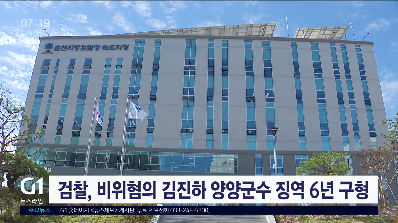 춘천지법 속초지원 형사부 심리로 열린 김진하 양양군수의 부정 청탁 및 금품 등 수수의 금지에 관한 법률 위반과 강제추행 등의 혐의 사건 1심 공판에서 검찰은 4천만 원의 벌금과 징역 6년을 내려 달라고 재판부에 요청했습니다.
