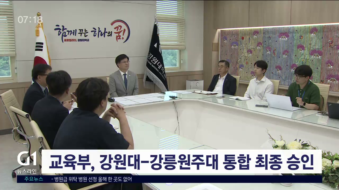 교육부가 강원대학교와 국립강릉원주대학교의 통합안을 최종 승인했습니다.