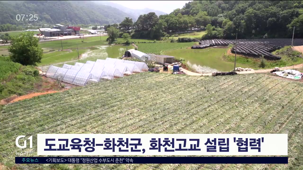 신경호 교육감과 최문순 화천군수는 어제(9일) 자율형 공립고 설립 예정 부지인 화천군 하남면 위라리에서 합동 현장점검을 벌였습니다.