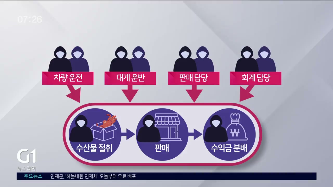 /이들 일당은 훔친 수산물을 판매해 돈을 나눠 갖기로 공모하고,