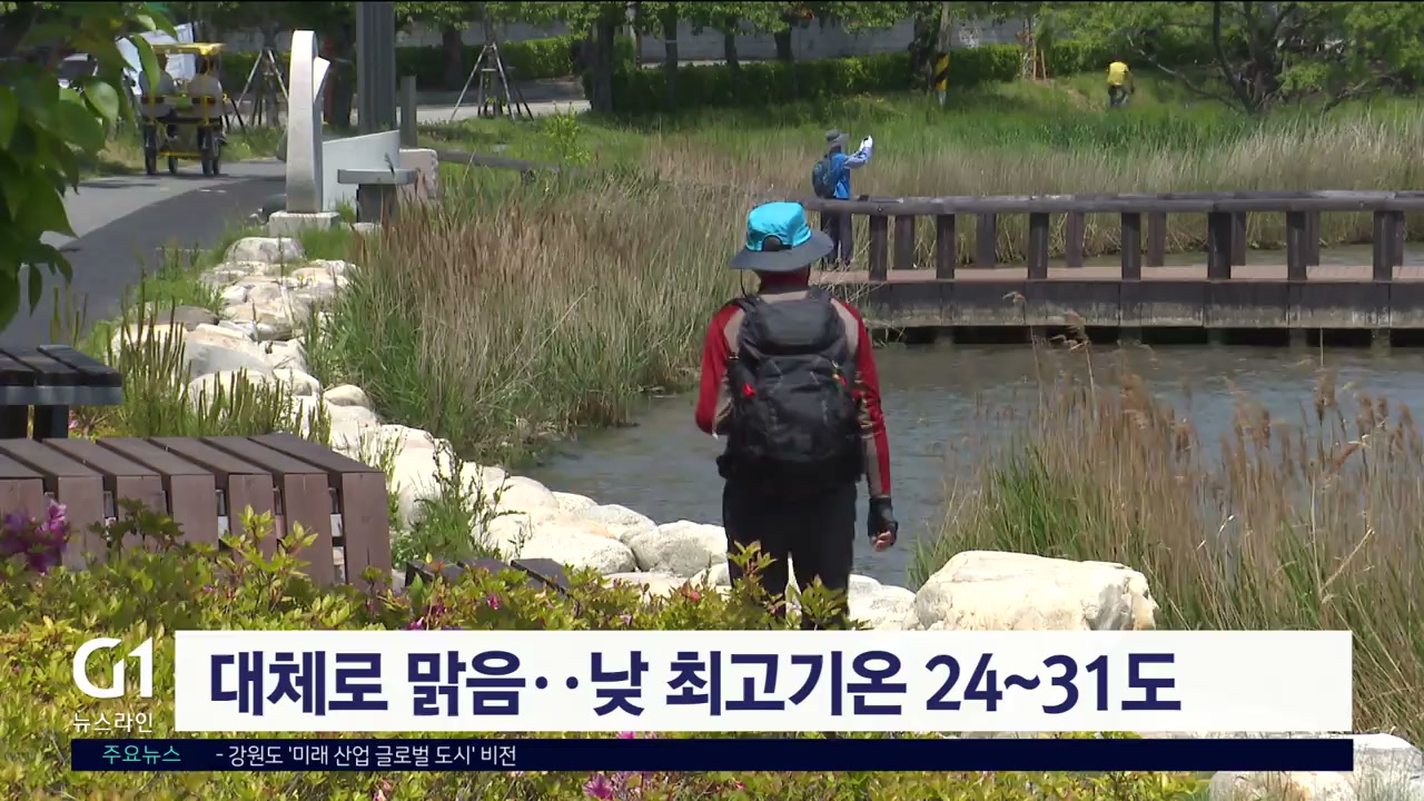낮 최고기온은 영서지역이 29도에서 31도, 영동지역은 24도에서 26도의 분포를 보이겠습니다.