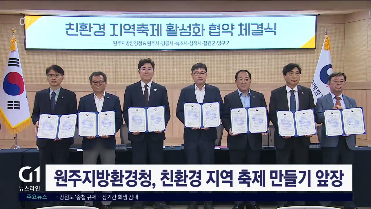 이들 기관은 어제(11일) 원주지방환경청에서 '지속가능한 친환경 지역축제 활성화'를 위한 업무 협약을 맺고, 탄소 중립 실천에 공동 협력하기로 했습니다.