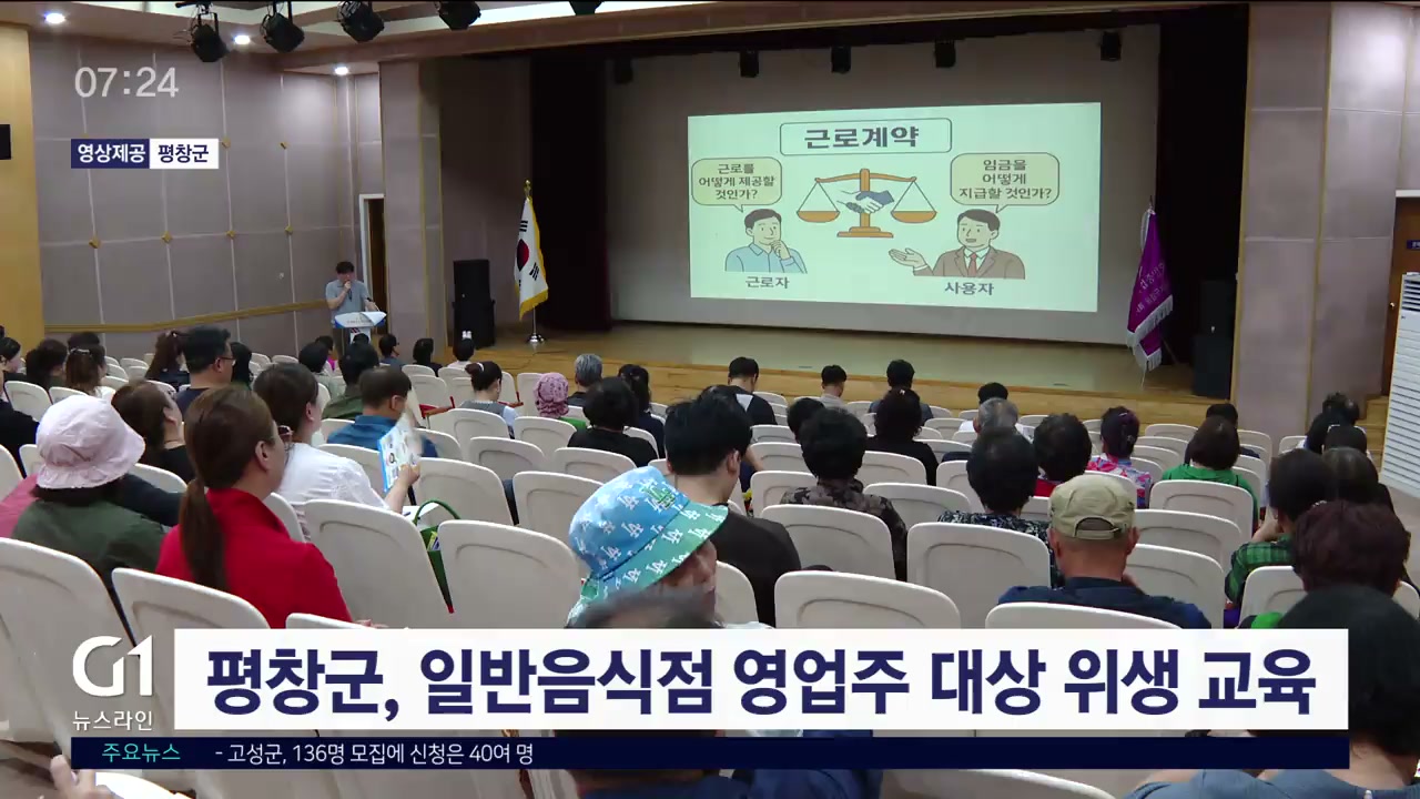 평창군이 지역 일반음식점 영업주를 대상으로 식품 위생교육을 실시했습니다.