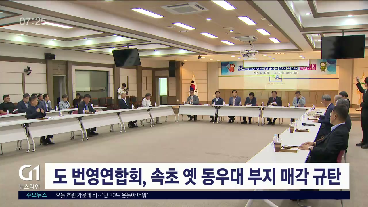 연합회는 어제(16일) 속초시청에서 정기 회의를 열고 “옛 동우대 부지는 형성 과정을 고려하면 시민 공공 자산”이라면서 시세 차익만을 보고 일방적으로 매각할 게 아니라 부지를 지역에 환원해야 한다고 주장했습니다.