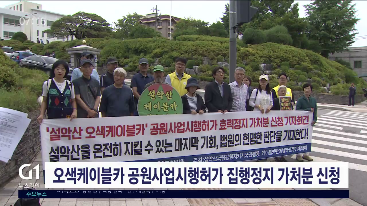 '설악산국립공원 지키기 국민행동'은 춘천지법에서 기자회견을 열고, 국립공원관리공단이 양양군에 내린 '설악산 오색케이블카 공원사업시행허가' 효력을 즉시 정지해 줄 것을 요청했습니다.