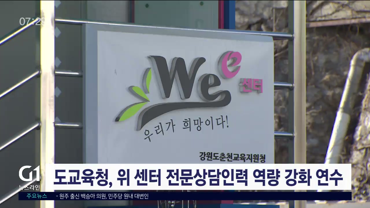 강원자치도교육청이 어제(19일) 강원디자인진흥원에서 위 센터 전문상담 인력을 대상으로 '학교폭력피해학생 치유지원 역량 강화 연수'를 실시했습니다.
