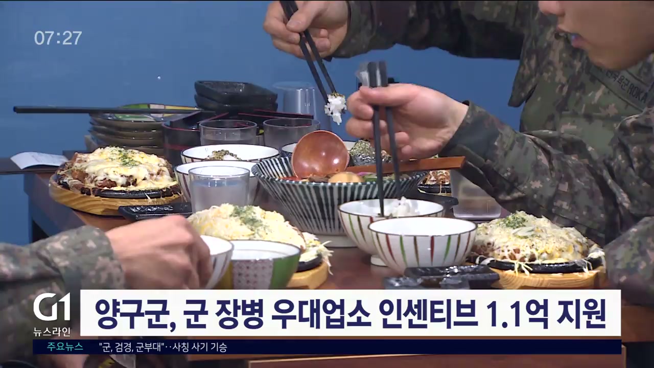 양구군은 올해 상반기 '군 장병 우대업소 인센티브 지원 사업'으로 1억 1,640만 원의 인센티브를 지원했습니다.