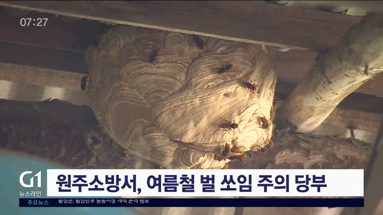 원주소방서는 지난해 원주지역 벌집 제거 출동 3천여 건 가운데 7월과 8월 출동 건이 전체의 68%를 차지했다고 밝혔습니다.